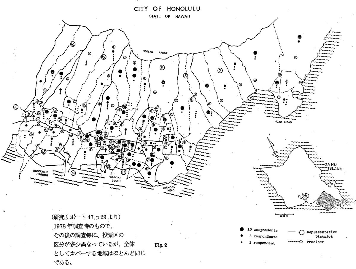 注)なお、1990年の国勢調査では、Honolulu Countyにおいて総人口は837,919人で、そのうち日系人は195,149人で、全体の約23.3%である。