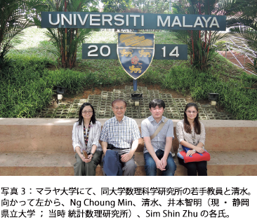 一方、20年近くにわたりマレーシアのマラヤ大学と研究者間交流を続けているのが清水だ。同大学はマレーシアのトップ校で、世界でも上位に位置づけられる国立の総合大学。清水は1997年にインドで開催された国際集会で、同大学数理科学研究所のOng Seng Huat教授と出会った。
