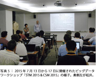 松井は、ビッグデータのための理論と方法について国際連携を進めている。連携先は、統数研がMOUを締結しているシンガポールのインフォコム研究所、スイスのETH Zurichリスク研究所、フランスのIRCICA、イギリスのロンドン大学など先進5カ国の8大学・研究所。これらの連携の母体となったのは、松井とロンドン大学のピーター・ギャレス博士が中心となり、3年にわたり開催してきたSTM(Spatial-Temporal Modeling; 時空間モデリング)のワークショップだ。