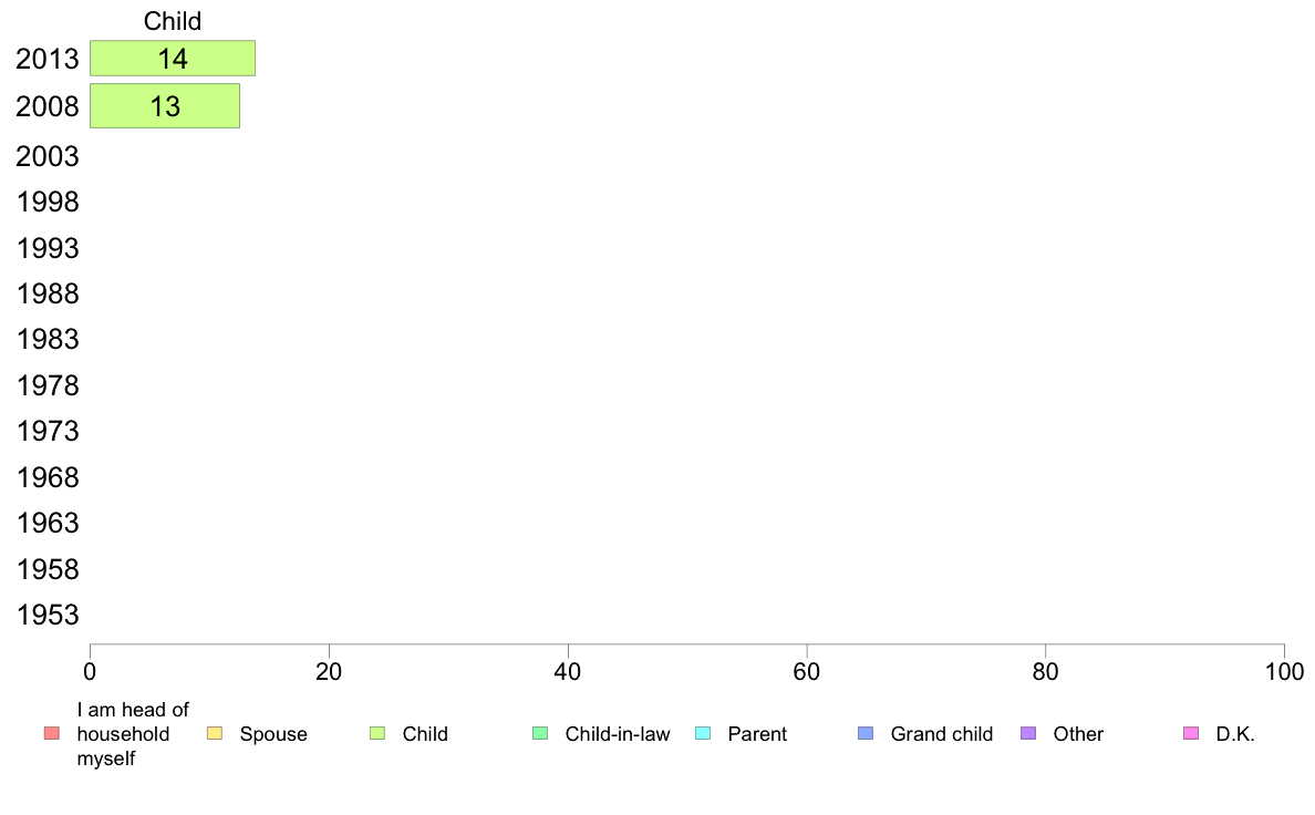 | 1 | I am head of household myself | | 2 | Spouse | | 3 | Child | | 4 | Child-in-law | | 5 | Parent | | 6 | Grand child | | 7 | Other(Specify) | 8 D.K. |