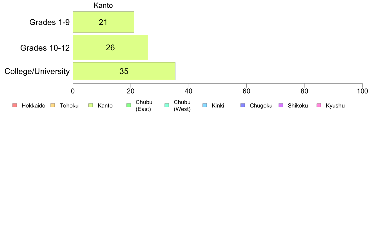 | 1 | Hokkaido : Hokkaido | | 2 | Tohoku : Aomori, Iwate, Miyagi, Akita, Yamagata, Fukushima | | 3 | Kanto : Ibaraki, Tochigi, Gumma, Saitama, Chiba, Tokyo, Kanagawa | | 4 | Chubu(East) : Niigata, Yamanashi, Nagano, Shizuoka | | 5 | Chubu(West) : Toyama, Ishikawa, Fukui, Gifu, Aichi | | 6 | Kinki : Mie, Shiga, Kyoto, Osaka, Hyogo, Nara, Wakayama | | 7 | Chugoku : Tottori, Shimane, Okayama, Hiroshima, Yamaguchi | | 8 | Shikoku : Kagawa, Ehime, Tokushima, Kochi | | 9 | Kyushu : Fukuoka, Saga, Nagasaki, Oita, Kumamoto, Miyazaki, Kagoshima, Okinawa |