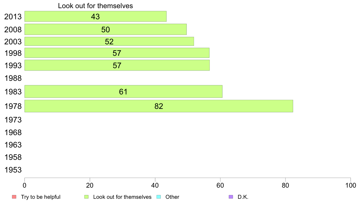 Would you say that most of the time, people try to be helpful, or that they are mostly just looking out for themselves?