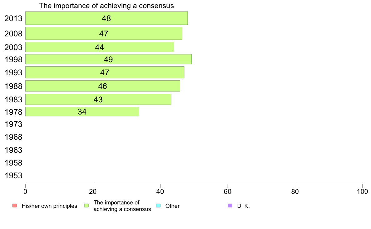 | 1 | A person who stresses his/her own principles | | 2 | A person who stresses the importance of achieving a consensus among other group members | | 3 | Other(Specify) | 4 D.K. |