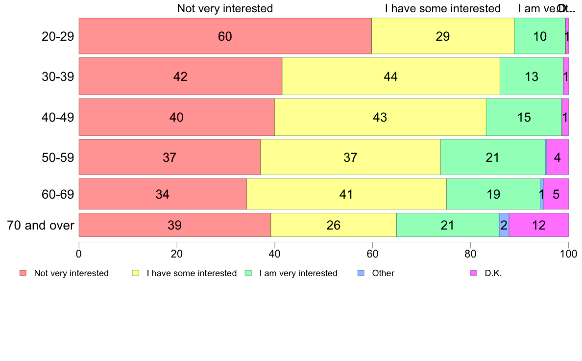 e Select from the list your level of interest in 'Issues regarding national defense in Japan.'