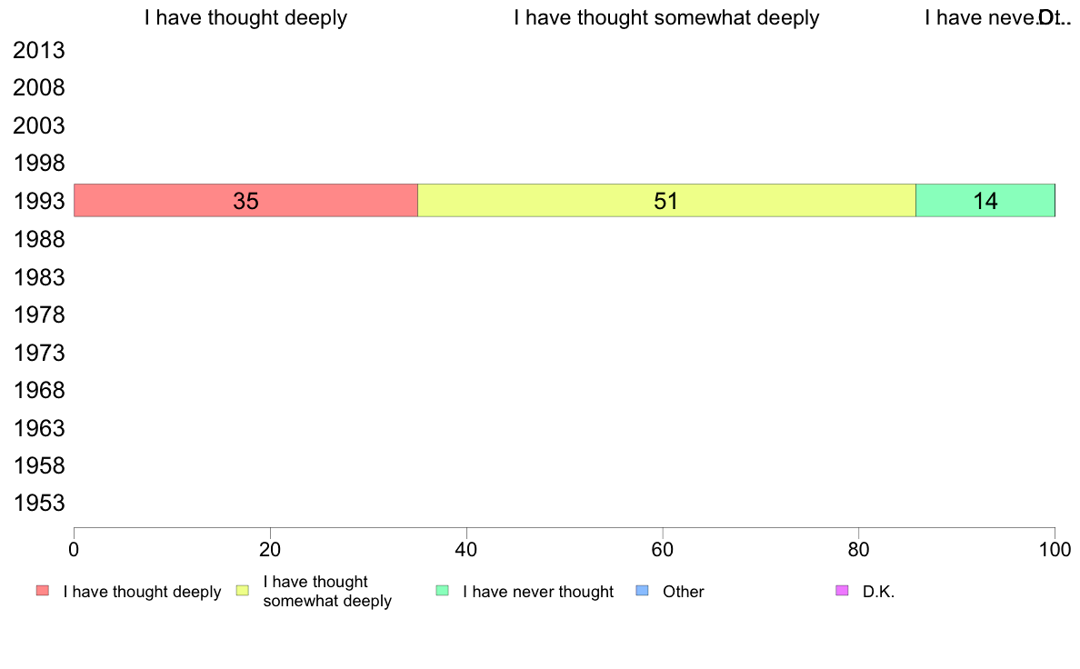 | | Ques. No. | I have thought deeply | I have thought somewhat deeply | I have never thought | Other | D.K. | Total |