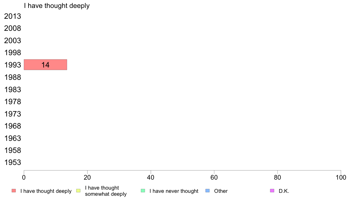 | 1 | I have thought deeply about this | | 2 | I have thought somewhat deeply about this | | 3 | I have never thought about this | | 4 | Other(Specify) | 5 D.K. |