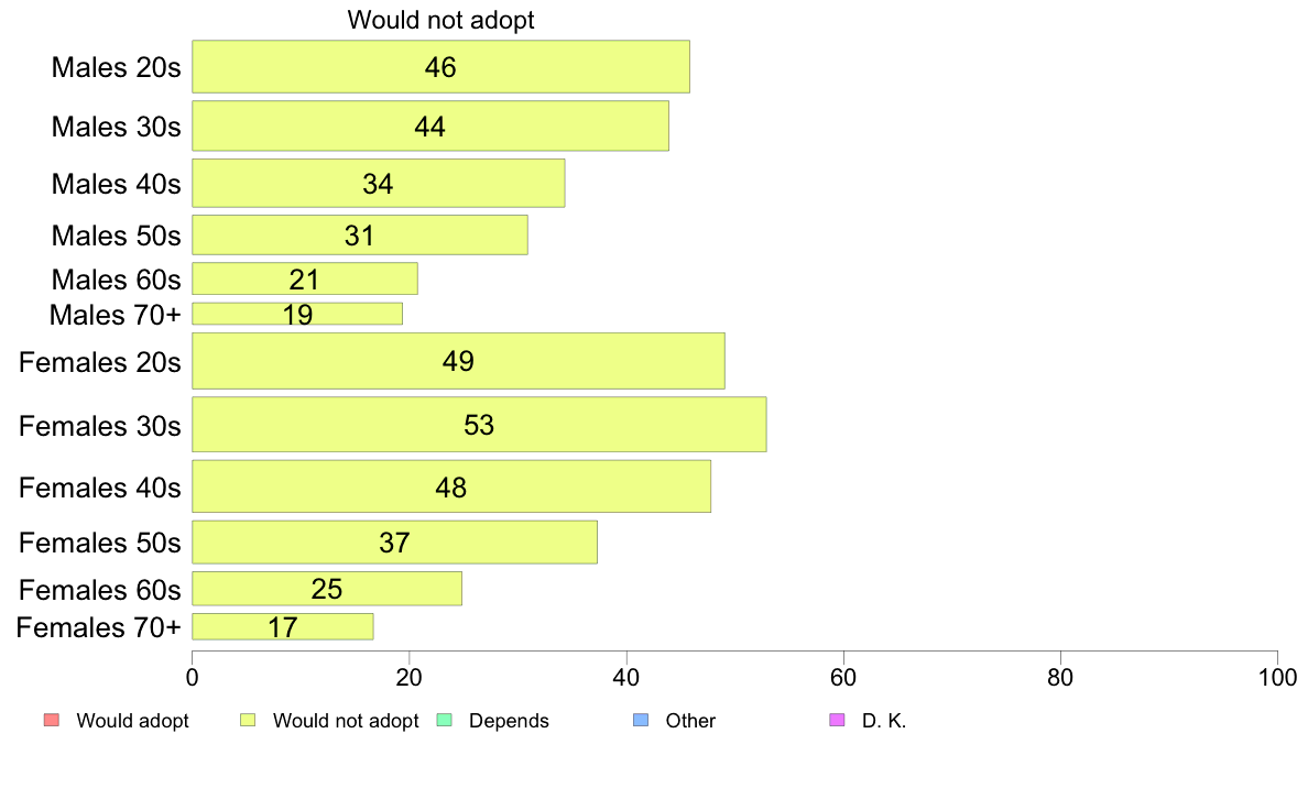 If you had no children, would you think it desirable to adopt a child in order to continue the family line, even if there is no blood relationship? Or do you not think this is important?