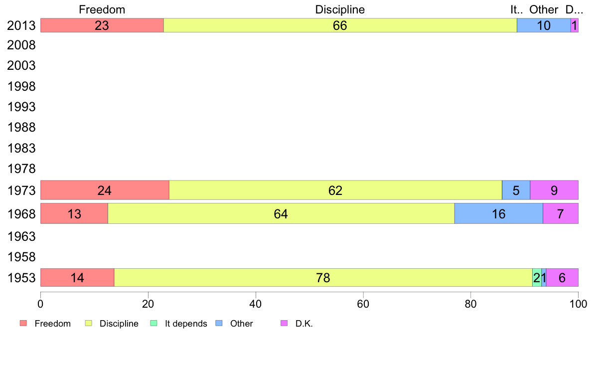 For a child of the same age, do you think it is more important to stress the value of freedom or the value of discipline?