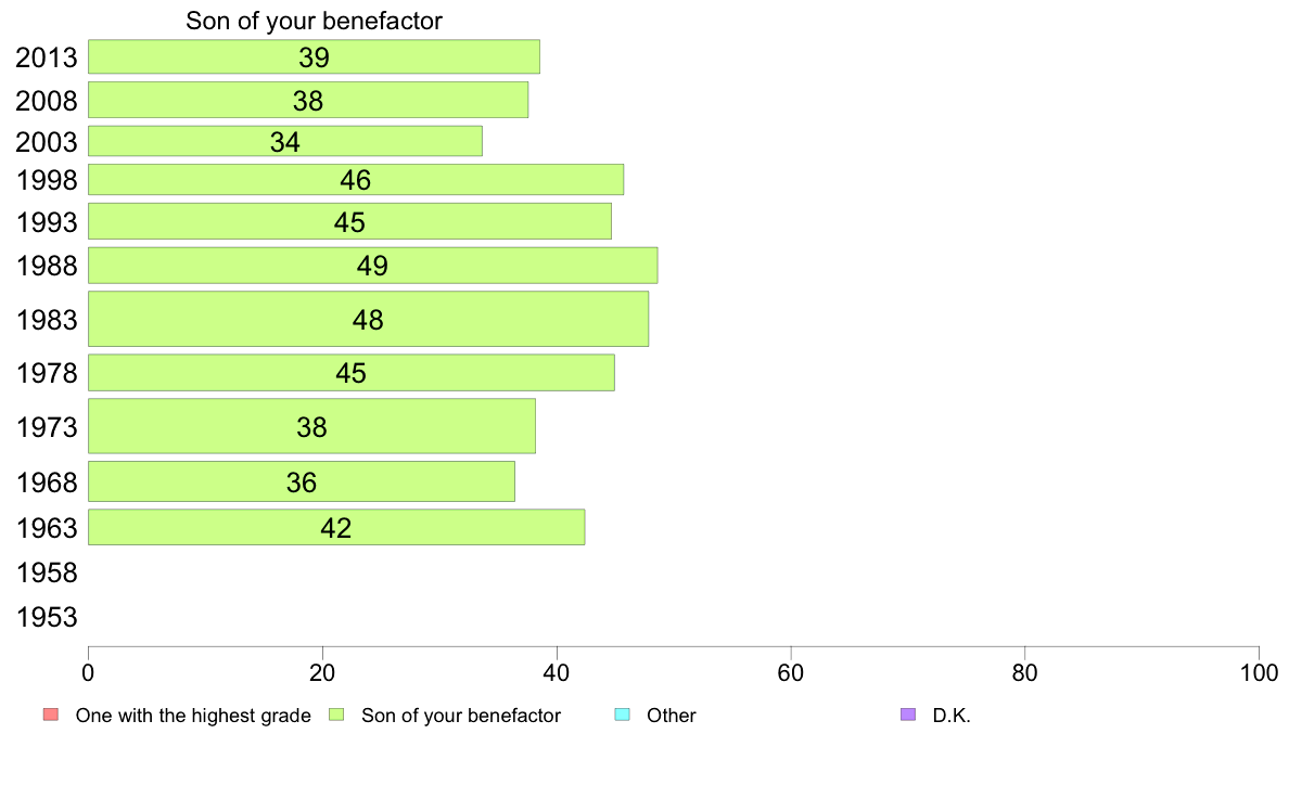 (Hand card) In the last question we supposed that the one getting the second highest grade was your relative. Suppose that the one who got the second highest grade was the son of parents to whom you felt indebted. Which person would you employ?
