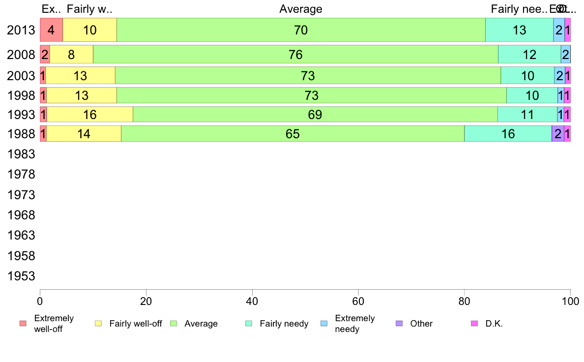 | | Ques. No. | Extremely well-off | Fairly well-off | Average | Fairly needy | Extremely needy | Other | D.K. | Total |