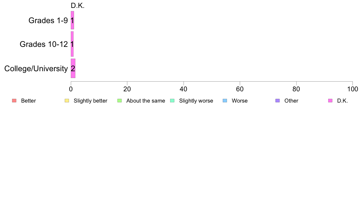 1 (A) Better | 2 (B) Slightly better | 3 (C) About the same | 4 (D) Slightly worse | 5 (E) Worse | 6