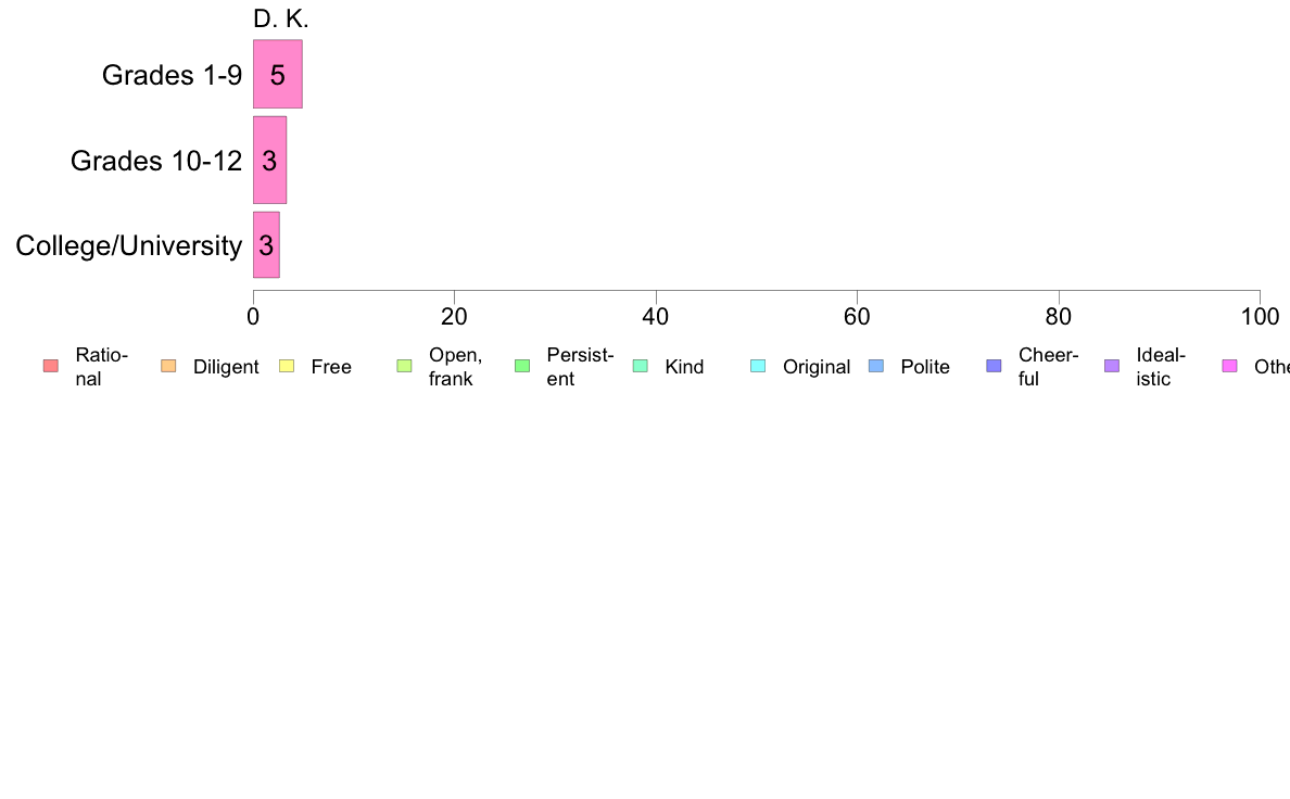 (Hand card) Which of the following adjectives do you think describes the character of the Japanese people? Choose as many as you like.