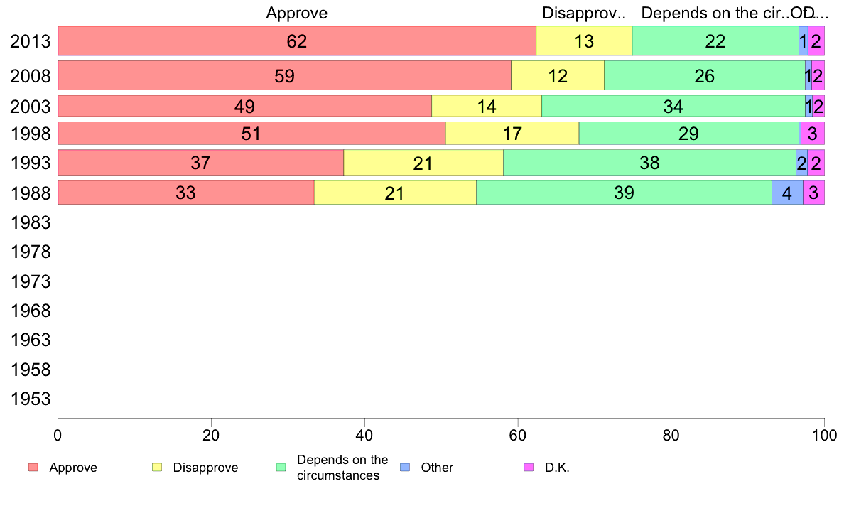| 1 | Approve | | 2 | Disapprove | | 3 | Depends on the circumstances | | 4 | Other(Specify) | 5 D.K. |