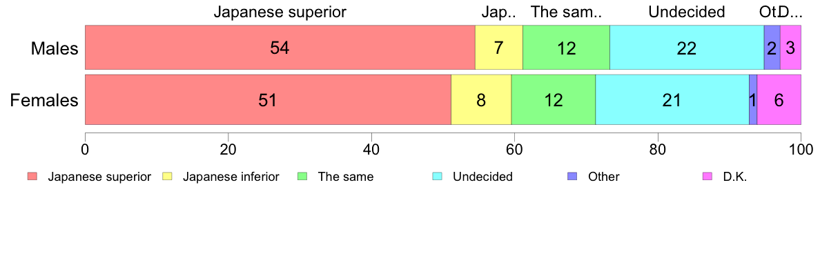Generally speaking, would you say that the Japanese people are superior to, or inferior to Western peoples?