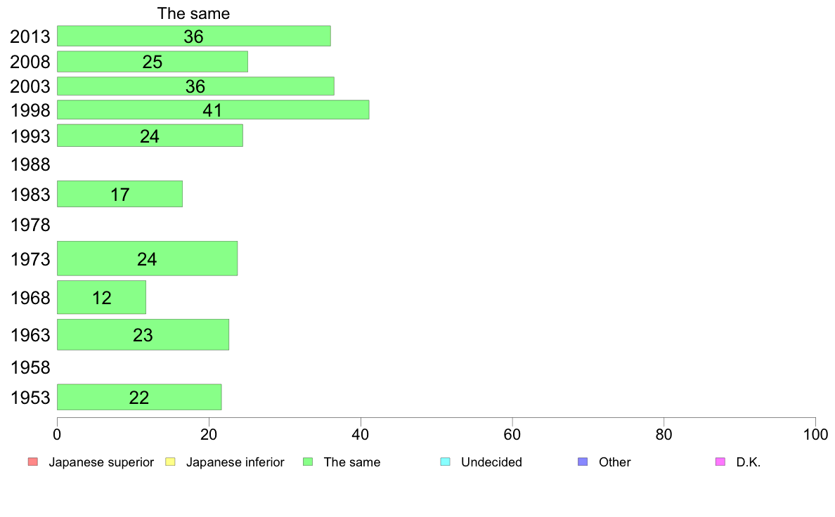 | 1 | Japanese superior | | 2 | Japanese inferior | | 3 | The same | | 4 | Undecided | | 5 | Other(Specify) | 6 D.K. |