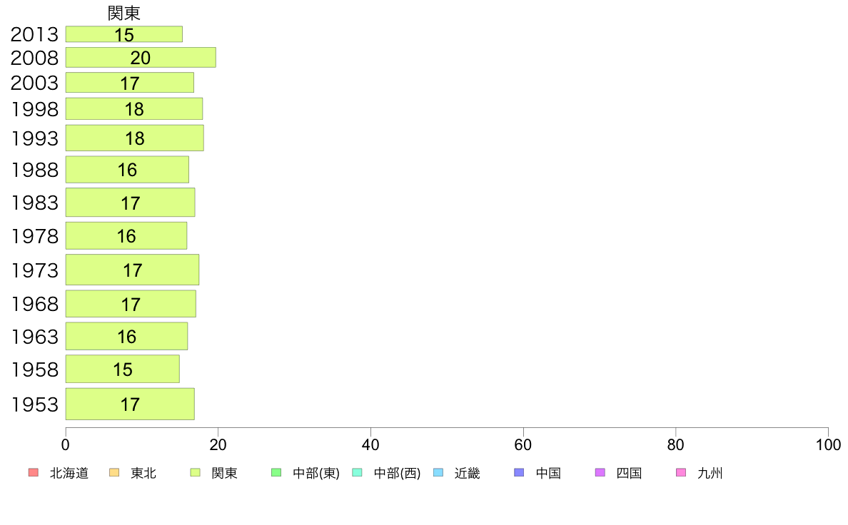 関東:茨城、栃木、群馬、埼玉、千葉、東京、神奈川