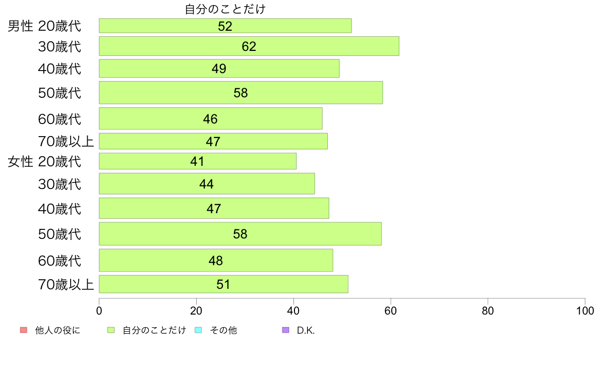 たいていの人は、他人の役にたとうとしていると思いますか、それとも、自分のことだけに気をくばっていると思いますか?