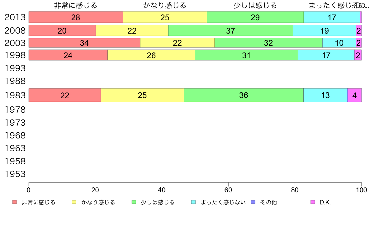 | 1 | 非常に感じる | | 2 | かなり感じる | | 3 | 少しは感じる | | 4 | まったく感じない | | 5 | その他[記入] | 6 D.K. |
