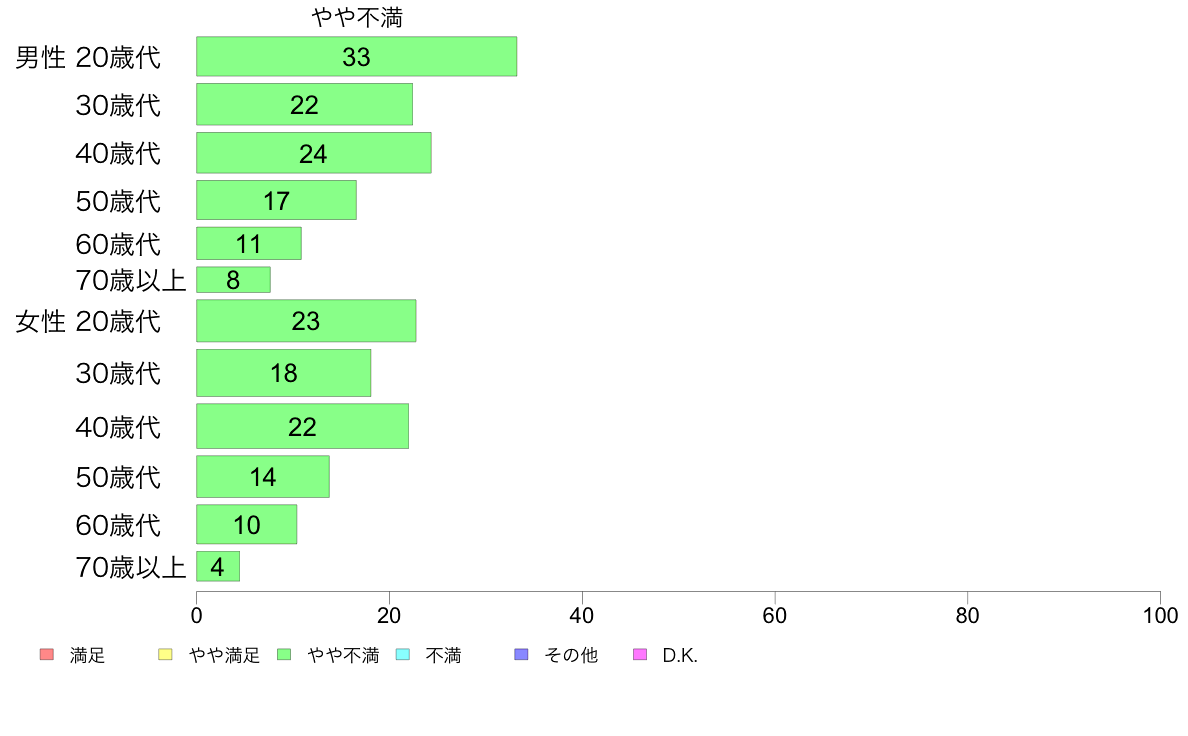 集計対象:第8次 1988年 年齢層別市郡別 やや満足不満