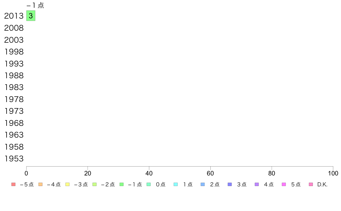 [リスト]現在、あなた自身はどの程度幸せですか。「とても幸せ」を5点、「とても不幸」をー5点、「ふつう」を0点とすると、何点くらいになると思いますか。数字を一つだけ選んで下さい?
