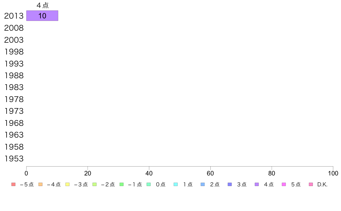 [リスト]現在、あなた自身はどの程度幸せですか。「とても幸せ」を5点、「とても不幸」をー5点、「ふつう」を0点とすると、何点くらいになると思いますか。数字を一つだけ選んで下さい?