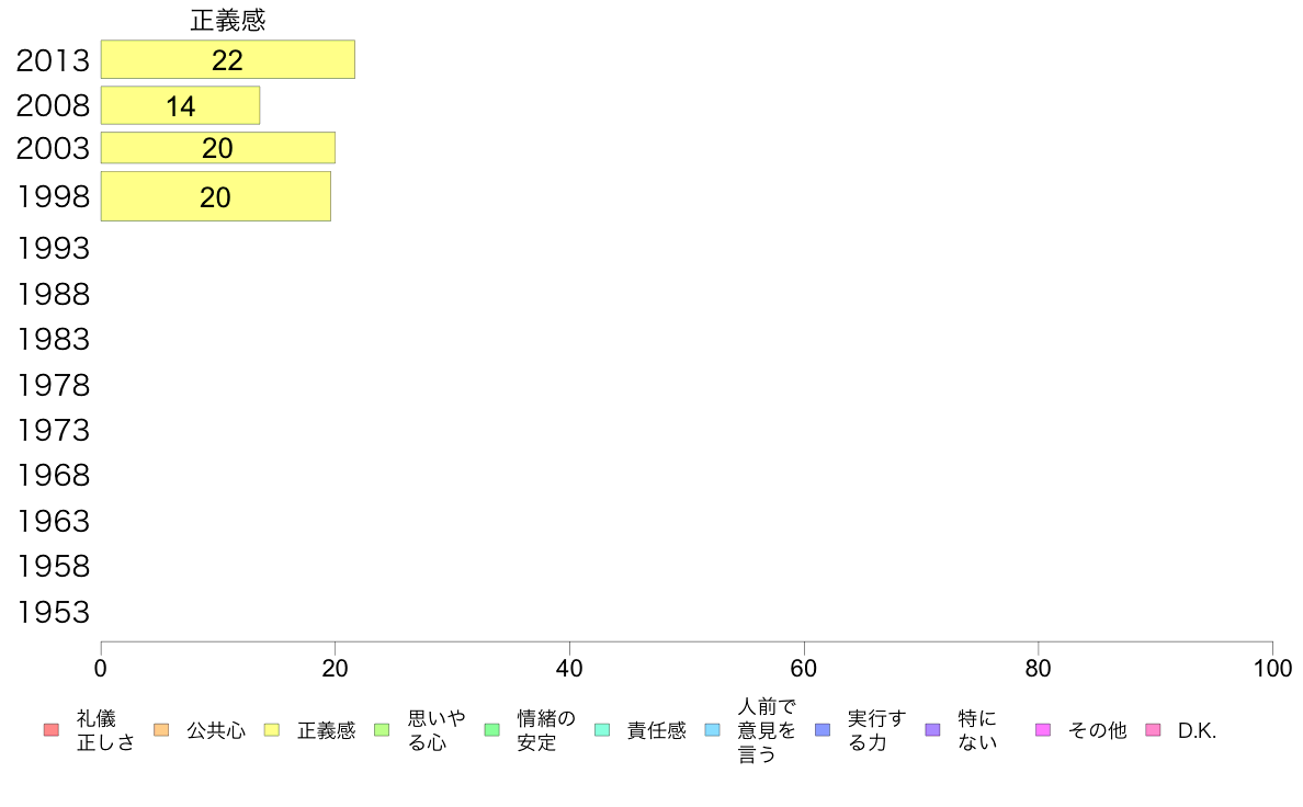 [リスト]子供がいるとしたら、あなたは、将来、どのような性質を持つ大人になってほしいと思いますか。つぎの中から、特に重要と思うものを3つ選んでください?(M.A.)