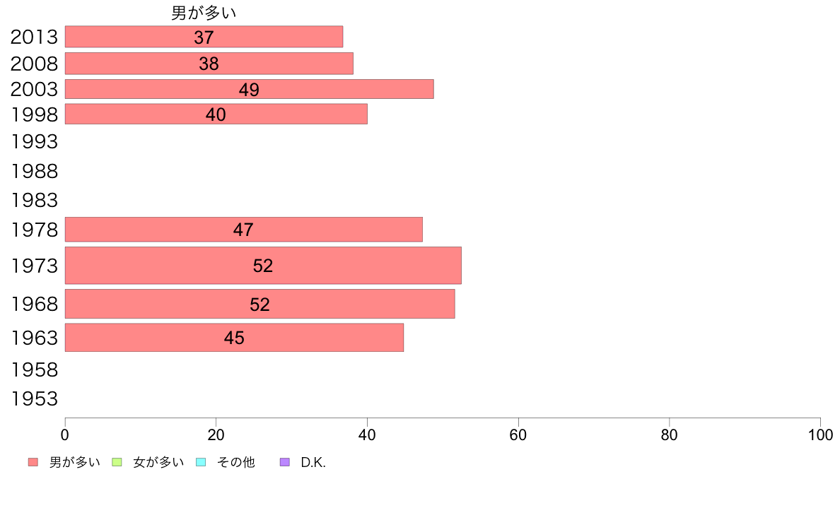 集計対象:中部(西)     全ての回答選択肢女が多い