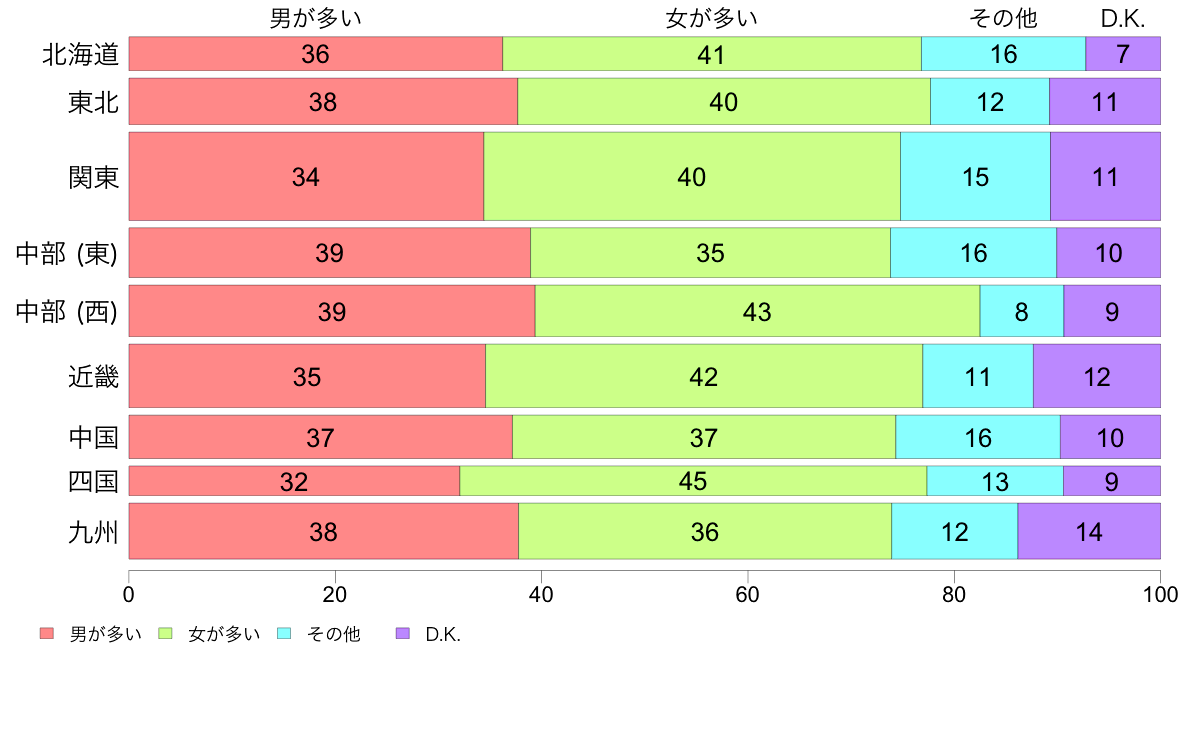 | 男が多い | 女が多い | その他 | D. K. | 計 |