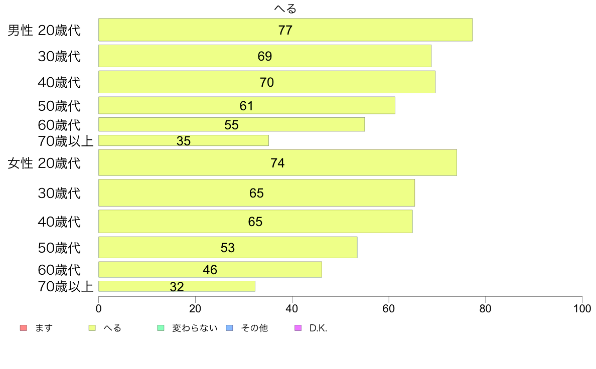 b では,心のやすらかさは,ますと思いますか,へると思いますか?