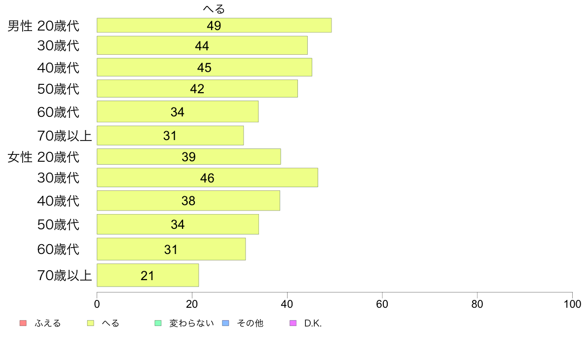 集計対象:第13次 2013年 年齢層別市郡別 ふえる変わらない