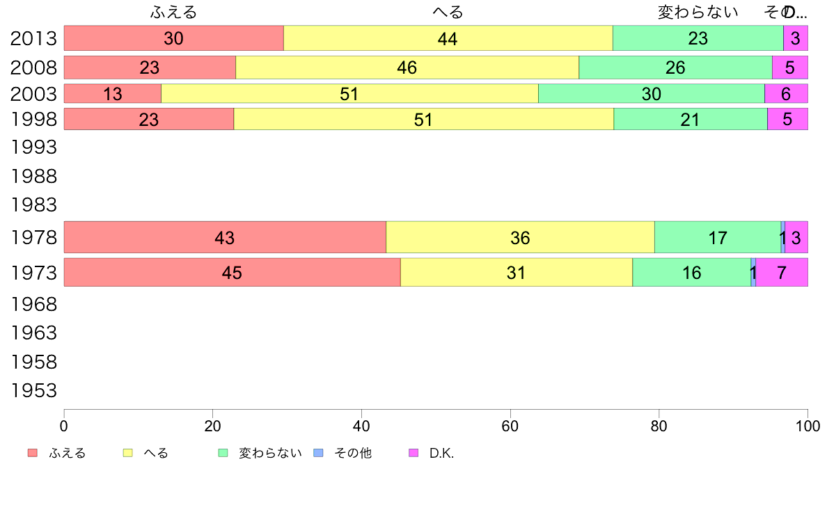 | | 問 | ふえる | へる | 変わらない | その他 | D. K. | 計 |
