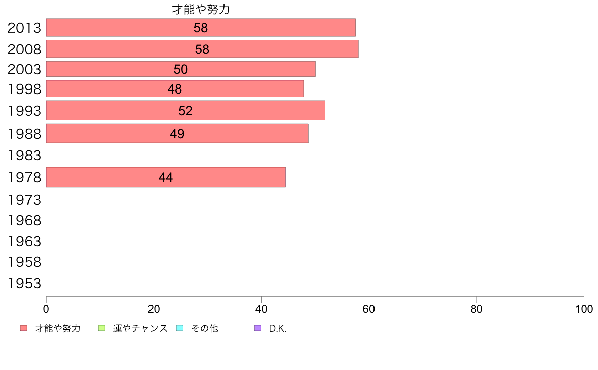 いまの社会で成功している人をみて、その人の成功には、個人の才能や努力と、運やチャンスのどちらが大きな役割をはたしていると思いますか?