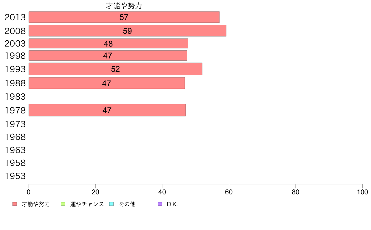いまの社会で成功している人をみて、その人の成功には、個人の才能や努力と、運やチャンスのどちらが大きな役割をはたしていると思いますか?