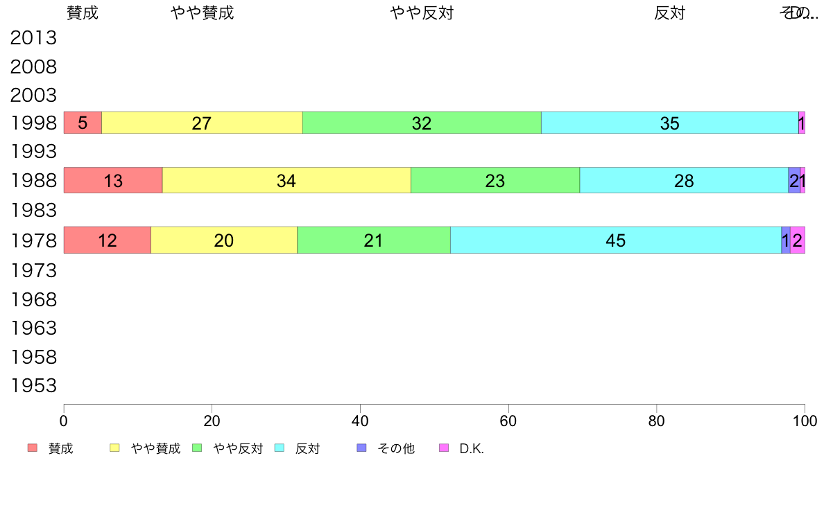 | | 問 | 賛成 | やや賛成 | やや反対 | 反対 | その他 | D. K. | 計 |