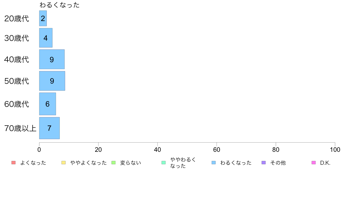 〔リスト〕あなたの生活水準は、この10年間でどう変りましたか?