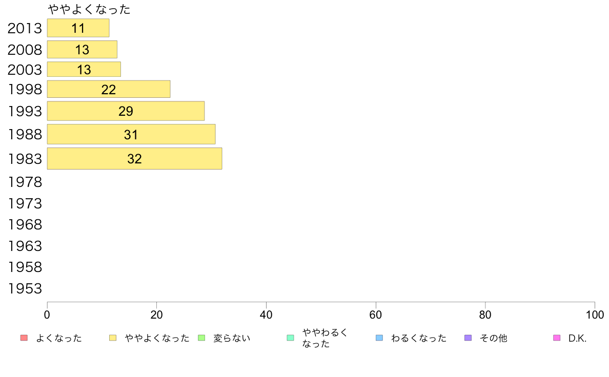 [リスト]あなたの生活水準は、この10年間でどう変りましたか?