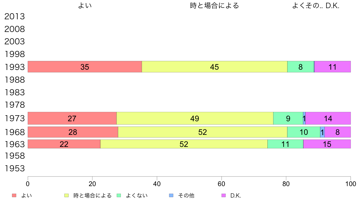 | 1 | よい | | 2 | 時と場合による | | 3 | よくない | | 4 | その他[記入] | 5 D.K. |