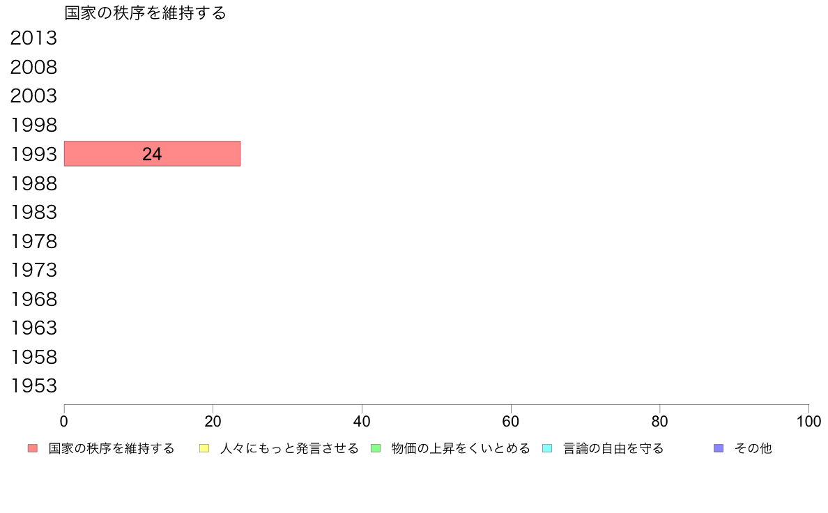 [リスト]わが国の向こう10年から15年間の国家目標をどう設定したらよいかについて、最近盛んに議論されています。ここにいろいろな人が最も重視する目標がいくつかあげてあります。あなたはこれらの中で何が最も重要だと思いますか?