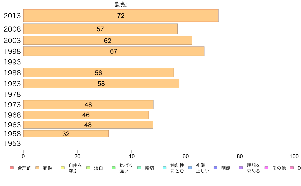 集計対象:70歳以上    第2次 1958年   第13次 2013年 合理的自由を尊ぶ