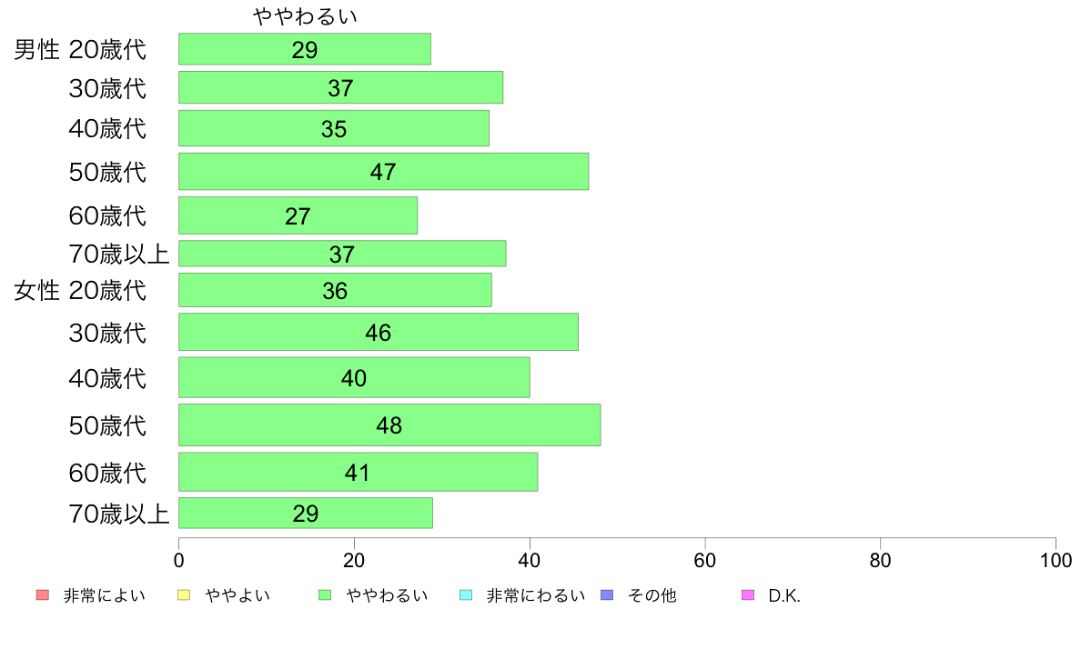 集計対象:第10次 1998年 年齢層別市郡別 ややよい非常にわるい