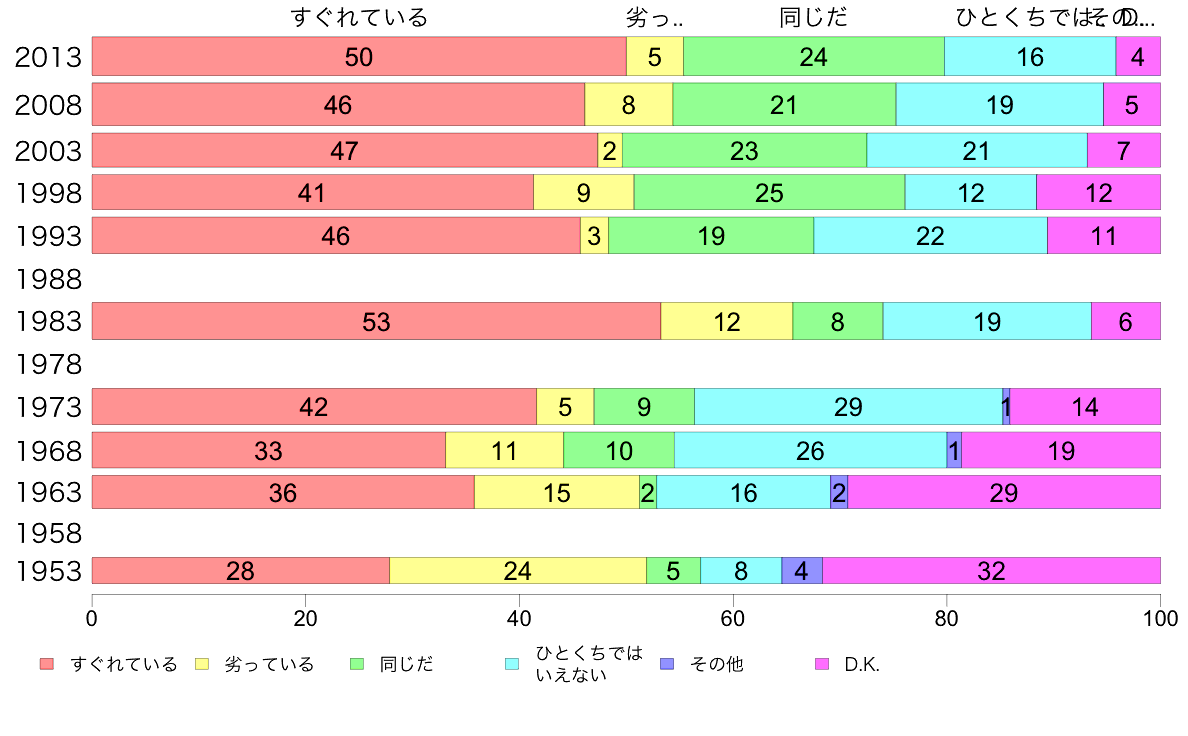 日本人は西洋人とくらべて、ひとくちでいえばすぐれていると思いますか、それとも劣っていると思いますか?