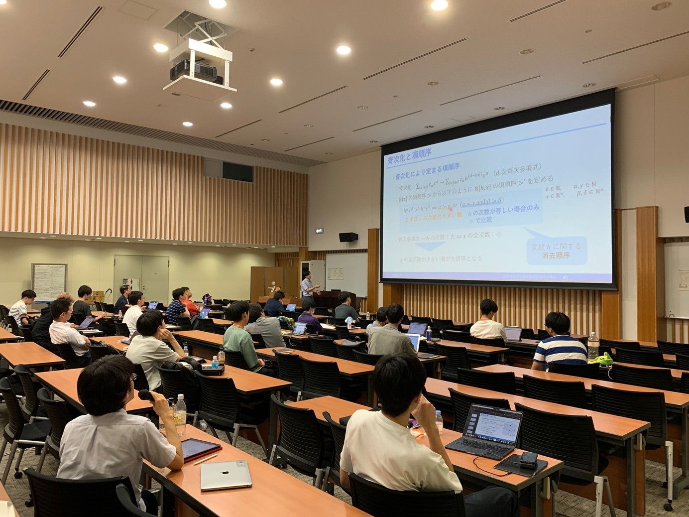2024 年 8 月 24 日から 26 日にかけて, 統計思考院公募型人材育成事業として, 連続最適化および関連分野に関する夏季学校が開催されました. 本夏季学校は, 連続最適化とその関連分野における基本的な事項から最先端の動向までを整理・理解し, 学生を含む若手研究者の基礎力の養成および新たな研究テーマの発見を目的として 2021 年から開催しているもので, 研究開発の俯瞰報告書 システム・情報科学技術分野 (2023 年) 2.7.4 意思決定と最適化の数理においても言及されているものです. 今年は講師として東京大学の丸茂直貴先生と大阪大学の庵智幸先生をお招きして, それぞれ非凸最適化アルゴリズムとその計算量解析, 数理最適化への数式処理の一応用 ---制約想定が不要な最適性条件の導出--- と題した講義と演習をしていただきました. また, 現地会場での演習やポスターセッションでは参加者同士の議論が盛んに行なわれました. 現地と遠隔を合わせて 78 名と多くの方にご参加いただくことができました. 参加者数は昨年と比べて減りましたが, ポスター発表件数が 5 件から 9 件に増加し, 現地会場の盛り上がりはむしろ高まっていたように思われます. メーリングリスト等での 告知の回数を抑えた結果としてライト層の参加者が減ったものの, コア層の参加者には影響がなかったということのように思われます.